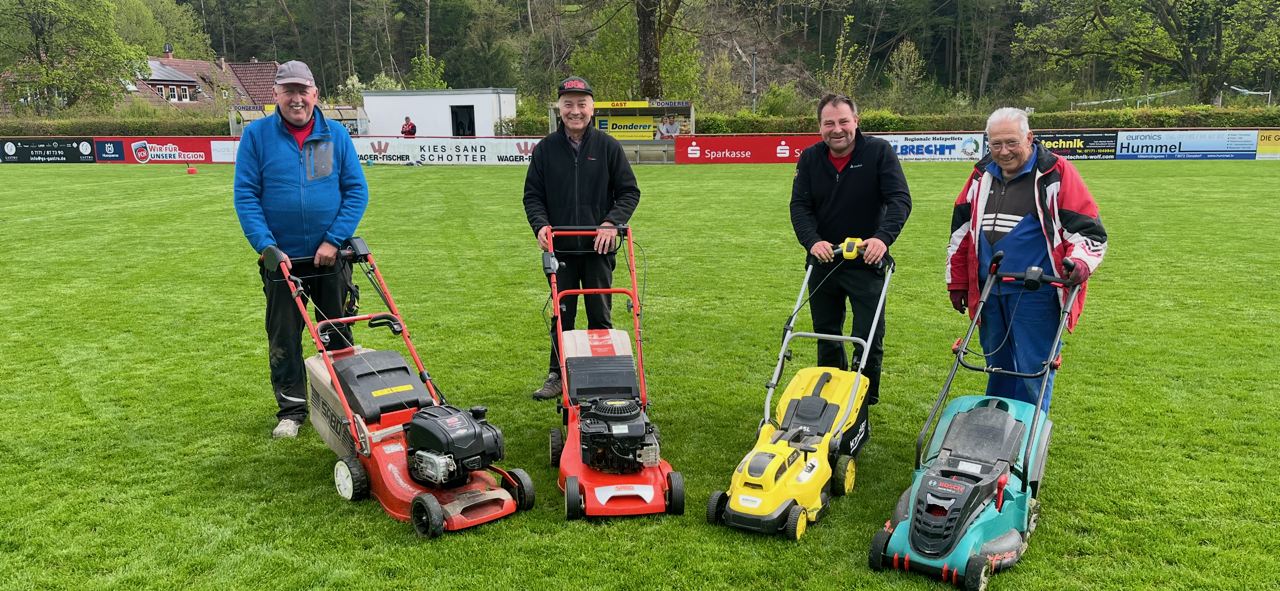 Sportplatzpflege vor dem Restart des Fußballbetriebs