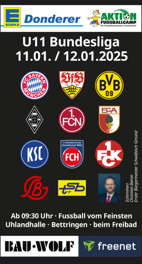 SG Bettringen und Aktion Fußballtag e.V. präsentieren Freenet & Edeka Donderer Bundesliga-Leistungsvergleich U12